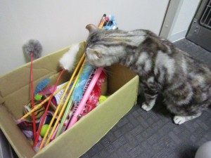 ヴィタちゃん(2才、♀)がおもちゃを選んでいます。