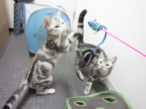 ララちゃん(8か月、♀、左手前)と、キキちゃん(8か月、♀、右奥)がホテルに来てくれました!
