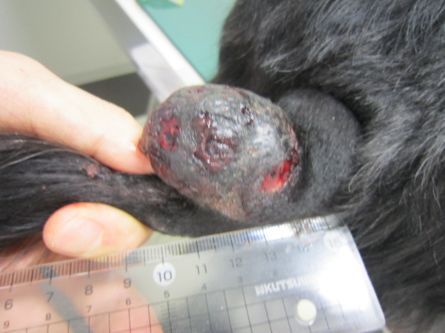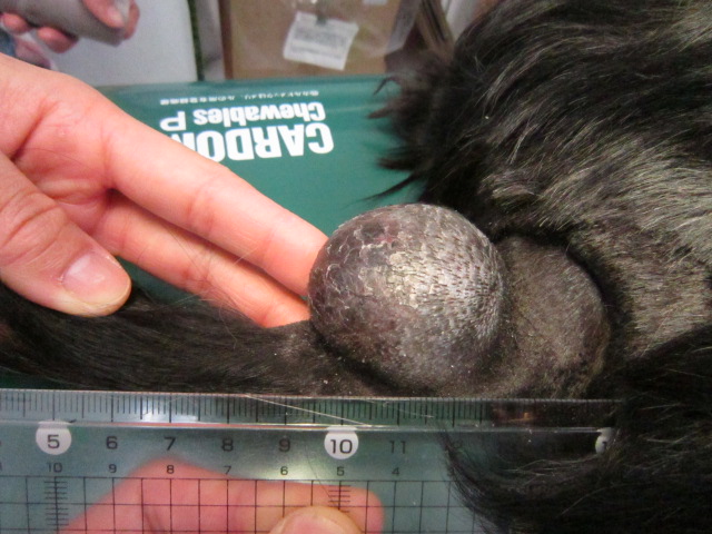 以前よりしっぽの付け根に腫瘍があり、様子を見ていたが、大きくなってきたということで手術することになった。