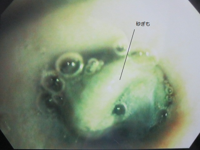 食道に砂ぎもがつまっています。
